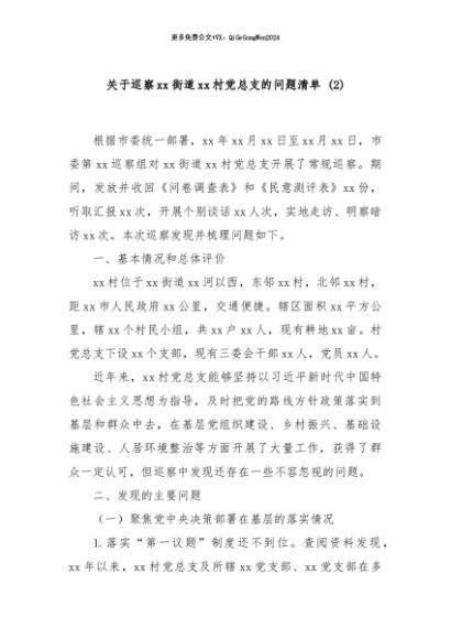 / 【七哥公文】2024年:关于巡察xx街道xx社区党总支的问题清单(2)+更多免费公文+VX:QiGeGongWen2024