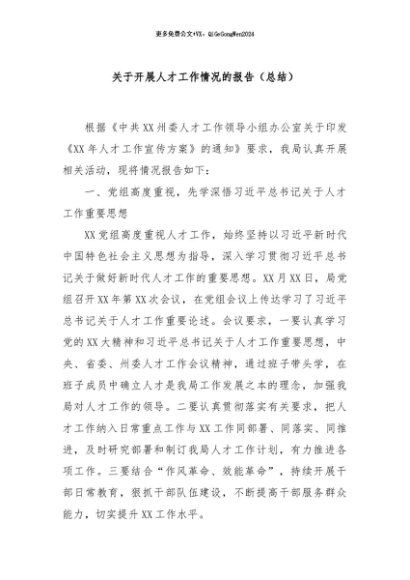 / 【七哥公文】2024年:关于开展人才工作情况的报告(总结)+更多免费公文+VX:QiGeGongWen2024