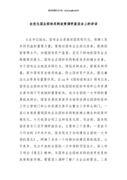 / 【七哥公文】2024年:在优化国企招标采购政策调研座谈会上的讲话+更多免费公文+VX:QiGeGongWen2024
