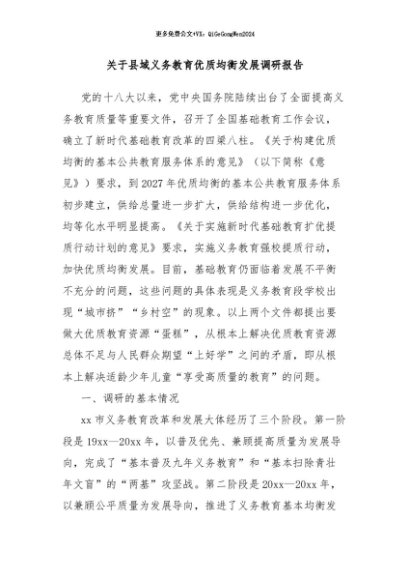 / 【七哥公文】2024年:关于县域义务教育优质均衡发展调研报告+更多免费公文+VX:QiGeGongWen2024
