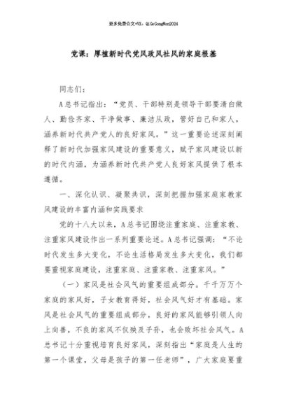 / 【七哥公文】2024年:党课:厚植新时代党风政风社风的家庭根基+更多免费公文+VX:QiGeGongWen2024