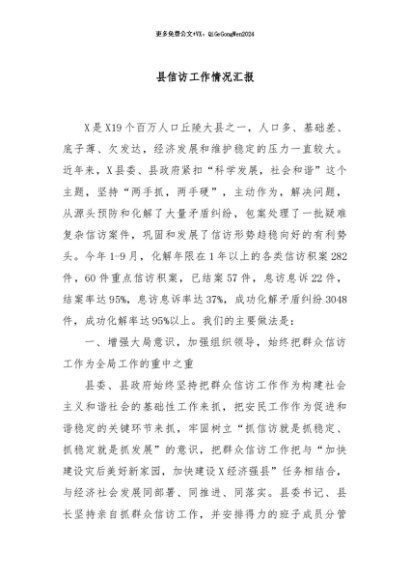 / 【七哥公文】2024年:县信访工作情况汇报+更多免费公文+VX:QiGeGongWen2024