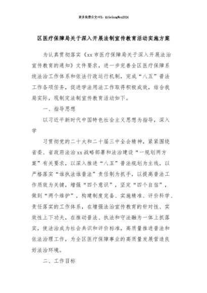 / 【七哥公文】2024年:区医疗保障局关于深入开展法制宣传教育活动实施方案+更多免费公文+VX:QiGeGongWen2024