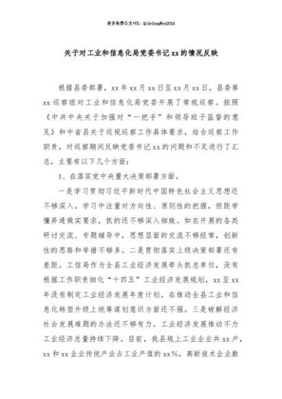 【七哥公文】2024年:关于对工业和信息化局党委书记xx的情况反映+更多免费公文+VX:QiGeGongWen2024