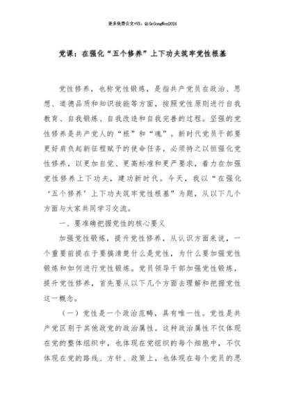 / 【七哥公文】2024年:党课:在强化“五个修养”上下功夫筑牢党性根基+更多免费公文+VX:QiGeGongWen2024