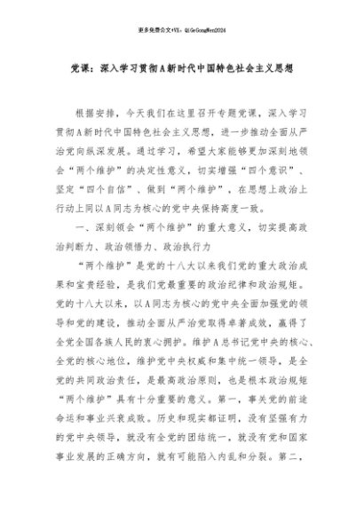 / 【七哥公文】2024年:党课:深入学习贯彻A新时代中国特色社会主义思想+更多免费公文+VX:QiGeGongWen2024