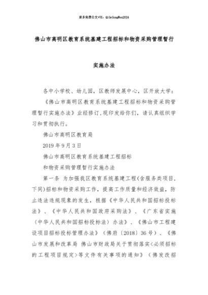 【七哥公文】2024年:佛山市高明区教育系统基建工程招标和物资采购管理暂行实施办法+更多免费公文+VX:QiGeGongWen2024