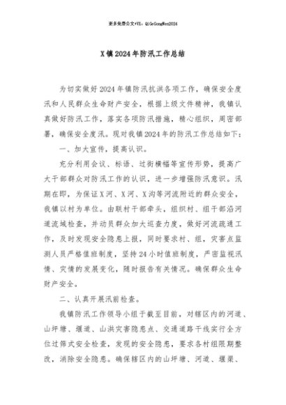 / 【七哥公文】2024年:X镇2024年防汛工作总结+更多免费公文+VX:QiGeGongWen2024