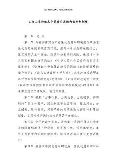 / 【七哥公文】2024年:X市工业和信息化局政府采购内部控制制度+更多免费公文+VX:QiGeGongWen2024