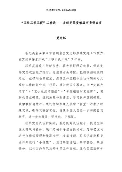 【七哥公文】2024年:“三联三抓三促”工作法——省纪委监委第五审查调查室党支部+更多免费公文+VX:QiGeGongWen2024