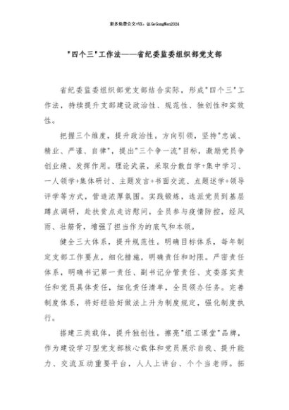 / 【七哥公文】2024年:“四个三”工作法——省纪委监委组织部党支部+更多免费公文+VX:QiGeGongWen2024