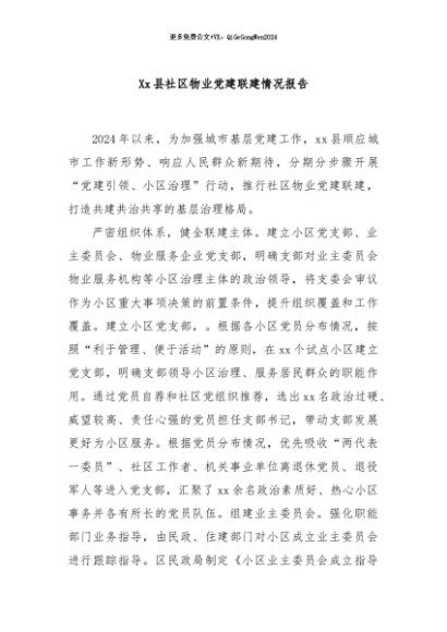 / 【七哥公文】2024年:Xx县社区物业党建联建情况报告+更多免费公文+VX:QiGeGongWen2024
