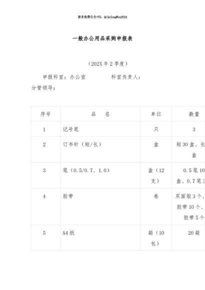 / 【七哥公文】2024年:一般办公用品采购申报表+更多免费公文+VX:QiGeGongWen2024