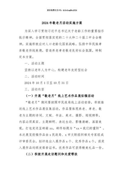 / 【七哥公文】2024年:2024年敬老月活动实施方案+更多免费公文+VX:QiGeGongWen2024