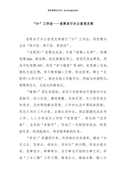 / 【七哥公文】2024年:“3+”工作法——省商务厅办公室党支部+更多免费公文+VX:QiGeGongWen2024