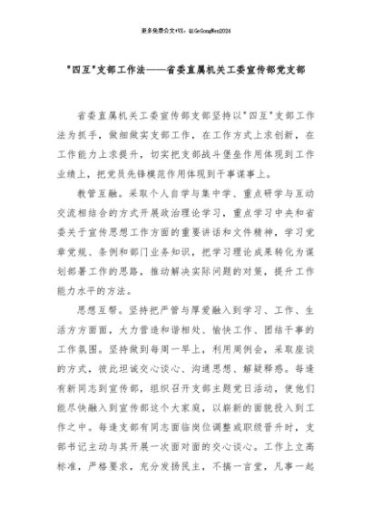 【七哥公文】2024年:“四互”支部工作法——省委直属机关工委宣传部党支部+更多免费公文+VX:QiGeGongWen2024