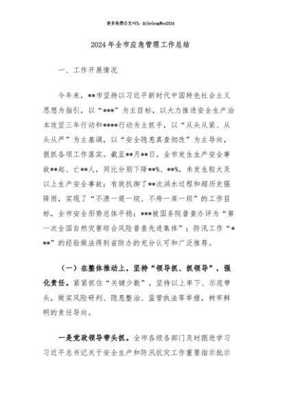 / 【七哥公文】2024年:2024年全市应急管理工作总结+更多免费公文+VX:QiGeGongWen2024