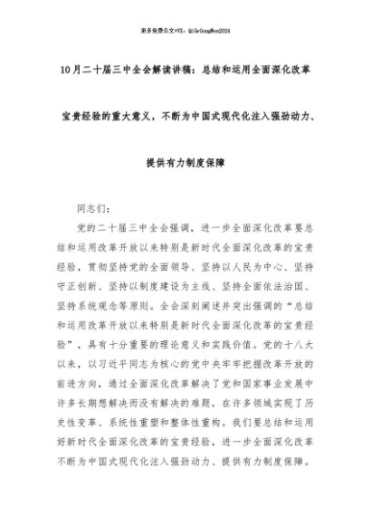 【七哥公文】2024年:10月二十届三中全会解读讲稿:总结和运用全面深化改革宝贵经验的重大意义,不断为中国式现代化注入强劲动力、提供有力制度保障+更多免费公文+VX:QiGeGongWen2024