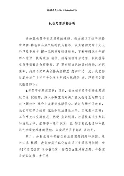 / 【七哥公文】2024年:队伍思想形势分析+更多免费公文+VX:QiGeGongWen2024