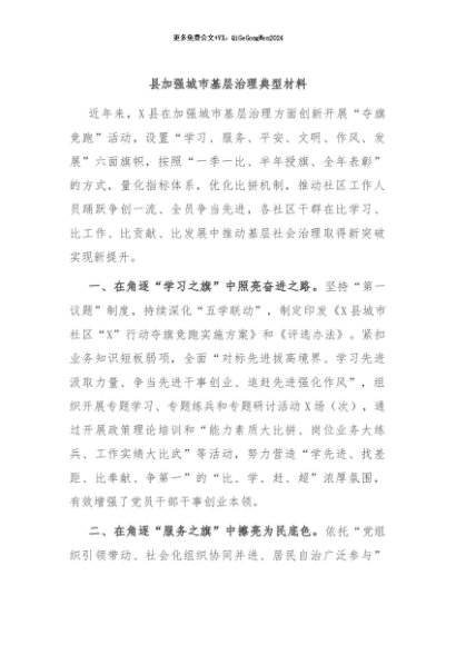 / 【七哥公文】2024年:县加强城市基层治理典型材料+更多免费公文+VX:QiGeGongWen2024