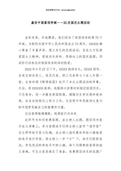 / 【七哥公文】2024年:盛世中国喜迎华诞--XX庆国庆主题活动+更多免费公文+VX:QiGeGongWen2024