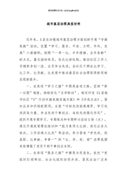 / 【七哥公文】2024年:城市基层治理典型材料+更多免费公文+VX:QiGeGongWen2024