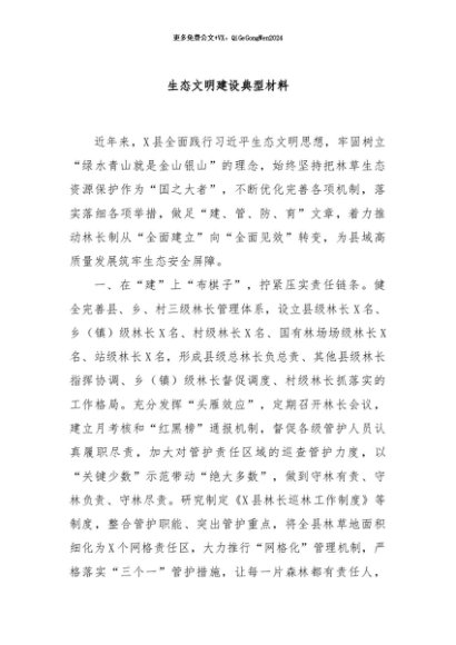 / 【七哥公文】2024年:生态文明建设典型材料+更多免费公文+VX:QiGeGongWen2024
