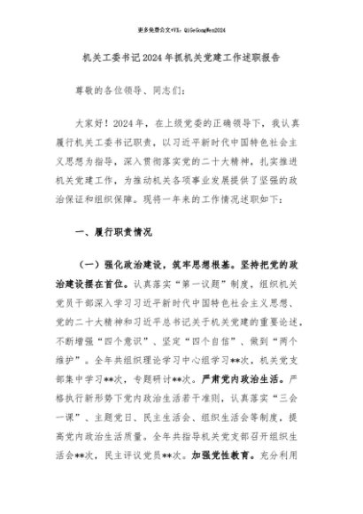 / 【七哥公文】2024年:机关工委书记2024年抓机关党建工作述职报告+更多免费公文+VX:QiGeGongWen2024