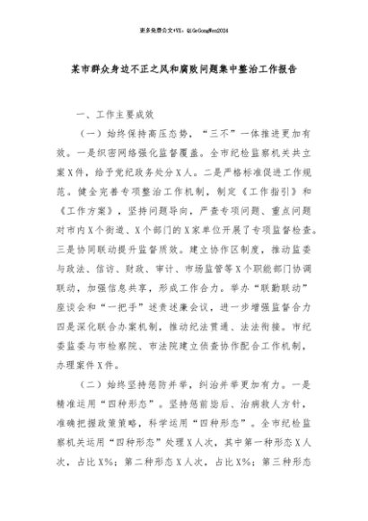 / 【七哥公文】2024年:某市群众身边不正之风和腐败问题集中整治工作报告+更多免费公文+VX:QiGeGongWen2024