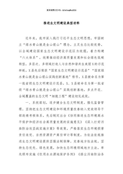 【七哥公文】2024年:推进生文明建设典型材料+更多免费公文+VX:QiGeGongWen2024