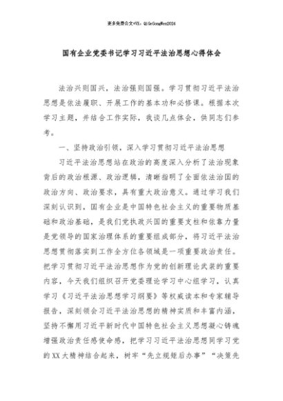 / 【七哥公文】2024年:国有企业党委书记学习习近平法治思想心得体会+更多免费公文+VX:QiGeGongWen2024