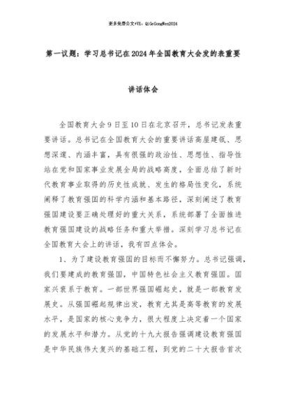 【七哥公文】2024年:第一议题:学习总书记在2024年全国教育大会发的表重要讲话体会+更多免费公文+VX:QiGeGongWen2024