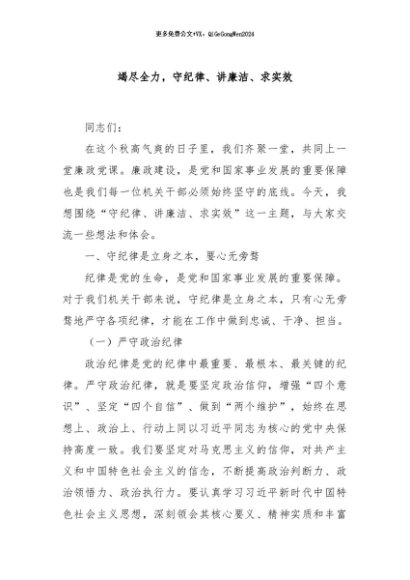 【七哥公文】2024年:竭尽全力,守纪律、讲廉洁、求实效+更多免费公文+VX:QiGeGongWen2024