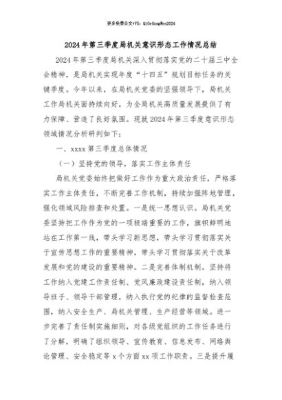 / 【七哥公文】2024年:2024年第三季度局机关意识形态工作情况总结+更多免费公文+VX:QiGeGongWen2024