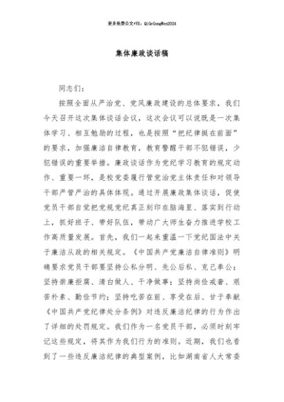 / 【七哥公文】2024年:集体廉政谈话稿+更多免费公文+VX:QiGeGongWen2024