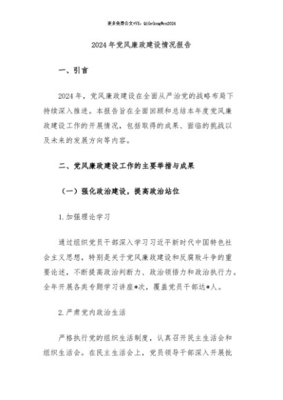 / 【七哥公文】2024年:2024年党风廉政建设情况报告+更多免费公文+VX:QiGeGongWen2024