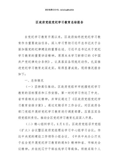 / 【七哥公文】2024年:区政府党组党纪学习教育总结报告+更多免费公文+VX:QiGeGongWen2024