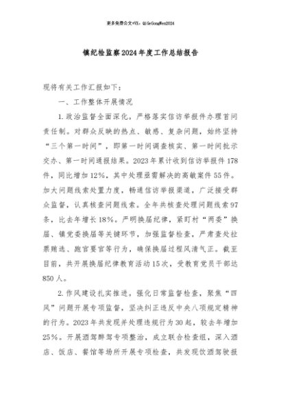 / 【七哥公文】2024年:镇纪检监察2024年度工作总结报告+更多免费公文+VX:QiGeGongWen2024