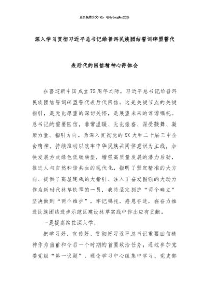 【七哥公文】2024年:深入学习贯彻习近平总书记给普洱民族团结誓词碑盟誓代表后代的回信精神心得体会+更多免费公文+VX:QiGeGongWen2024