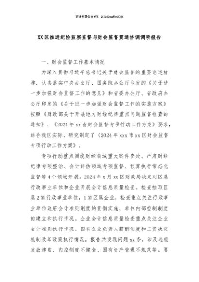 / 【七哥公文】2024年:XX区推进纪检监察监督与财会监督贯通协调调研报告+更多免费公文+VX:QiGeGongWen2024