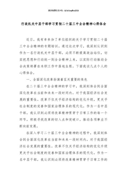 【七哥公文】2024年:行政机关中层干部学习贯彻二十届三中全会精神心得体会+更多免费公文+VX:QiGeGongWen2024