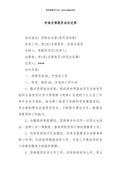 / 【七哥公文】2024年:补选支部委员会议记录+更多免费公文+VX:QiGeGongWen2024