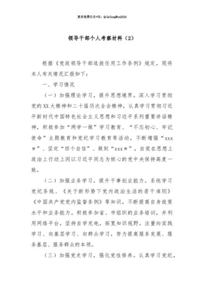 / 【七哥公文】2024年:领导干部个人考察材料(2)+更多免费公文+VX:QiGeGongWen2024