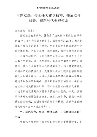 【七哥公文】2024年:主题党课:传承伟大建党精神,锤炼党性修养,在新时代勇担使命+更多免费公文+VX:QiGeGongWen2024