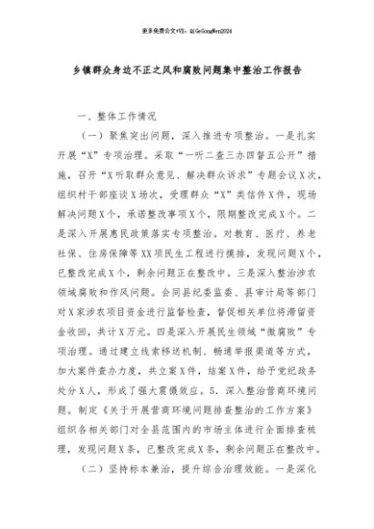 / 【七哥公文】2024年:乡镇群众身边不正之风和腐败问题集中整治工作报告+更多免费公文+VX:QiGeGongWen2024