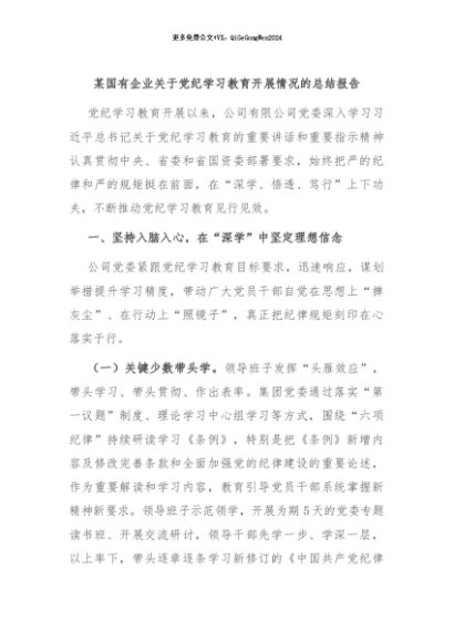 / 【七哥公文】2024年:某国有企业关于党纪学习教育开展情况的总结报告+更多免费公文+VX:QiGeGongWen2024