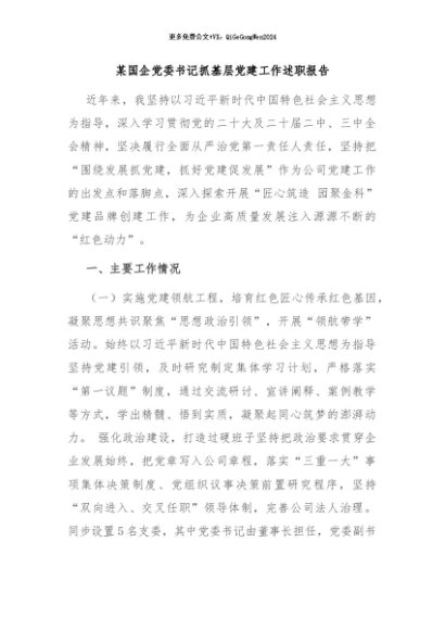 / 【七哥公文】2024年:某国企党委书记抓基层党建工作述职报告+更多免费公文+VX:QiGeGongWen2024