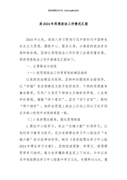 / 【七哥公文】2024年:局2024年思想政治工作情况汇报+更多免费公文+VX:QiGeGongWen2024