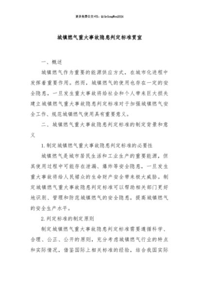 / 【七哥公文】2024年:城镇燃气重大事故隐患判定标准贯宣+更多免费公文+VX:QiGeGongWen2024