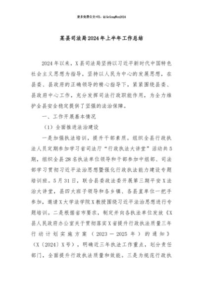 / 【七哥公文】2024年:某县司法局2024年上半年工作总结+更多免费公文+VX:QiGeGongWen2024